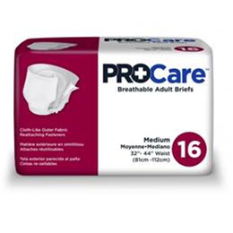 The ProCare ™ Breathable Unisex Adult Briefs by FirstQuality, are adultdiapers that are highly absorbent and are shaped for breathability, comfort and security. The briefsfeature a cloth-like outer fabric with breathable zones to keep skin dry andhealthy. The Reattaching direct lock fasteners allows for multiple re-fastenings for improved fit. They also feature materials used provide a thinner and more discrete fit. Breathable Adult Diapers - Keep Skin Dry, Cool & Comfortable Highly Absorbent Materials protecting from leakage Thin and Discreet Fit Reattaching direct lock fasteners Flexible Leg Elastics Disposable ItemNumber Size WaistSize Unit/Case CRB-012/1 Medium 34" to 44" Bag of 16/ 6 Bags per Case CRB-013/1 Large 45" to 58" Bag of 18/ 4 Bags per Case CRB-014/1 X-Large 59" to 64" Bag of 15/ 4 Bags per Case CRB-017 Bariatric 62" to 73" Bag of 12/ 4 Bags per Case