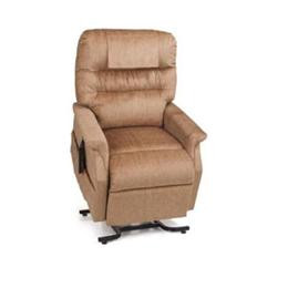 The Monarch Plus from the Golden Technologies Value Series comes in Medium & Large sizes and features a ultra soft back pillow with a full chaise pad, and the padded unique "grip rite" arm design for easy transfer.Medicare and Private Insurance may cover a portion of the lift mechanism.Stock colors are Sandstone, Deep Sea, Kelly, Merlot and custom fabrics are available.PR-359MWeight Capacity 375 LBSSeat Width 20"Seat Depth 21"Seat Height 19.5"PR-359LWeight Capacity 375 LBSSeat Width 23"Seat Depth 22"Seat Height 20.5"